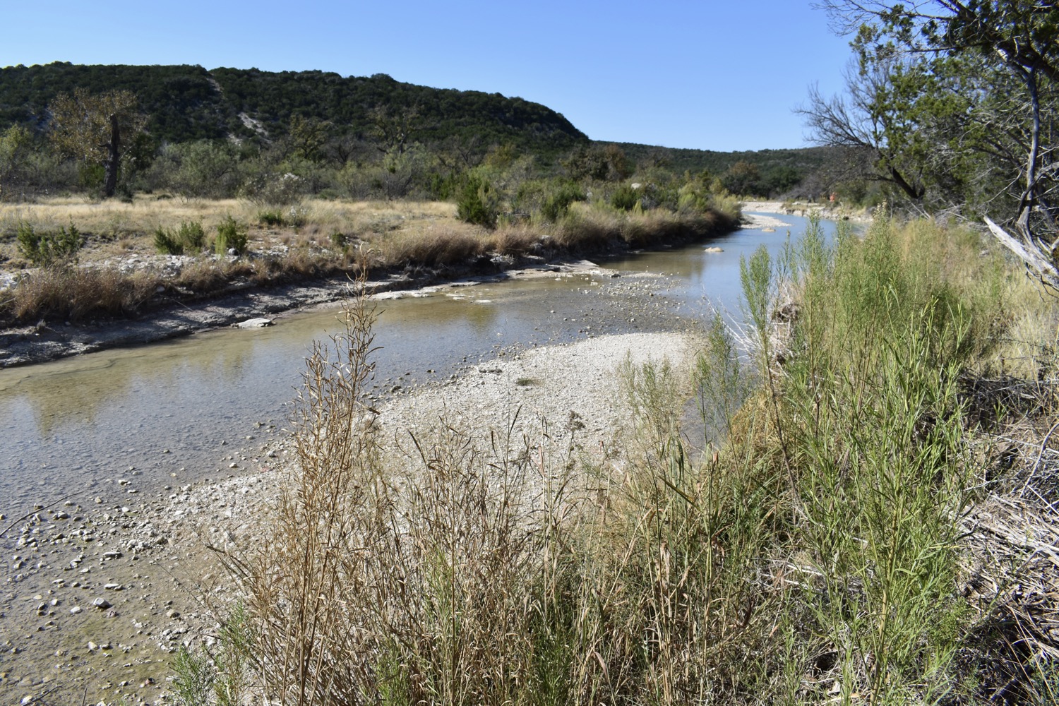 With Cedar Creek frontage, you’ll enjoy the rare combination of running water and elevated views. The land rolls gently, opening into valleys with rich soil on the east end and rising to higher ground on the west, providing classic Hill Country vistas.